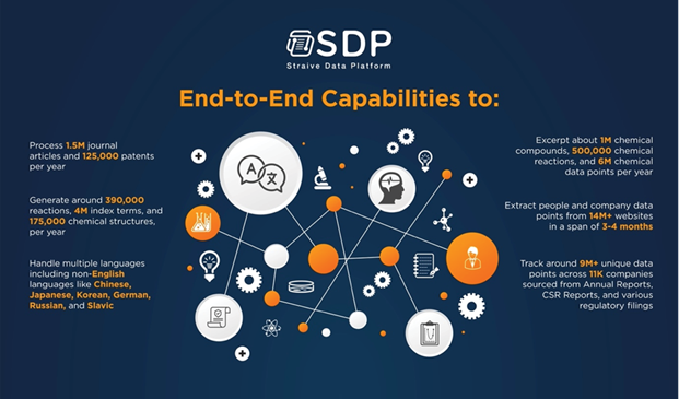 SDP has been designed to serve Straive’s use cases spanning text intelligence, public data intelligence, and vision intelligence across industries such as scientific content, financial services, risk and compliance, and legal and real estate through: